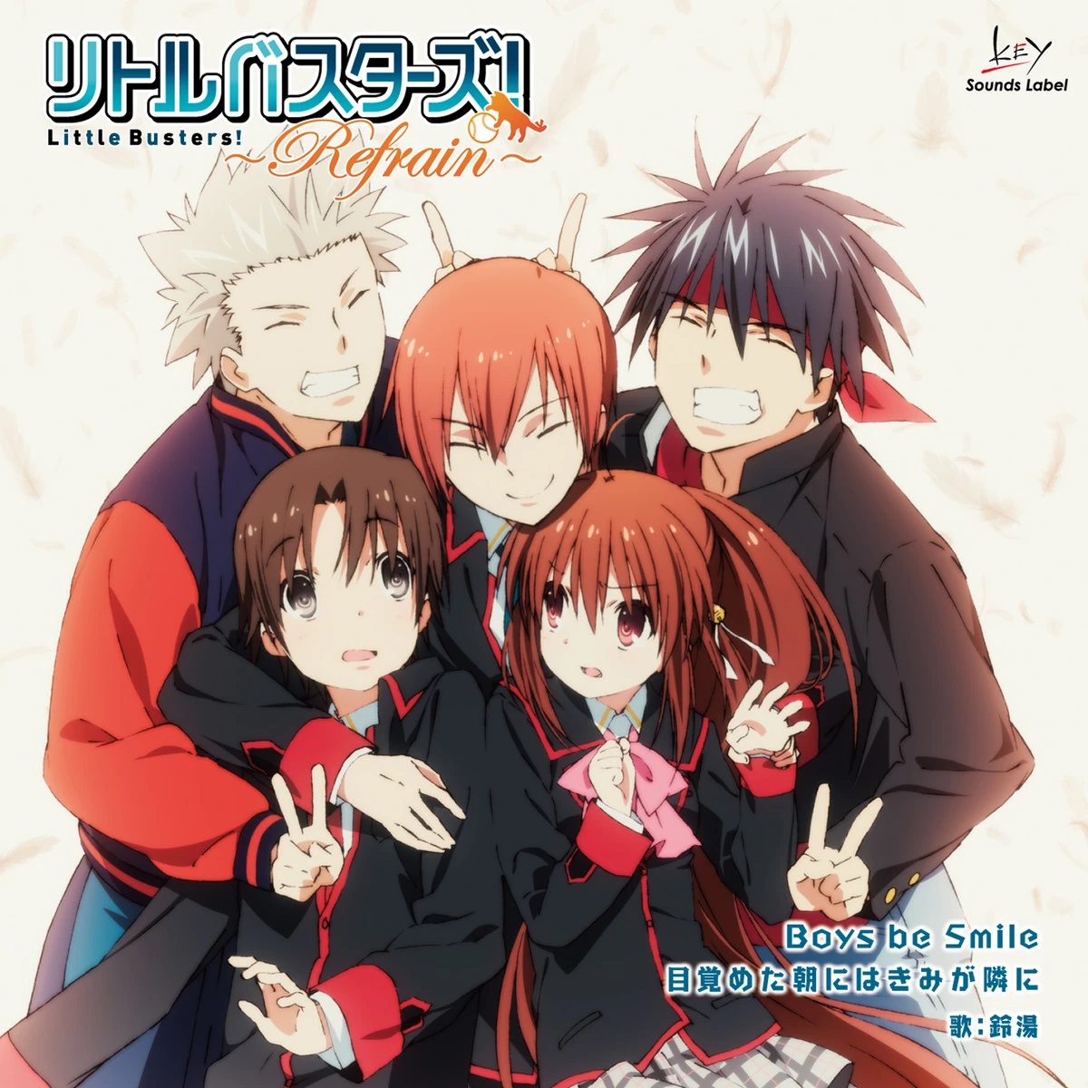 The lead track Boys be smile was used as the opening theme for the anime Little Busters! Refrain.