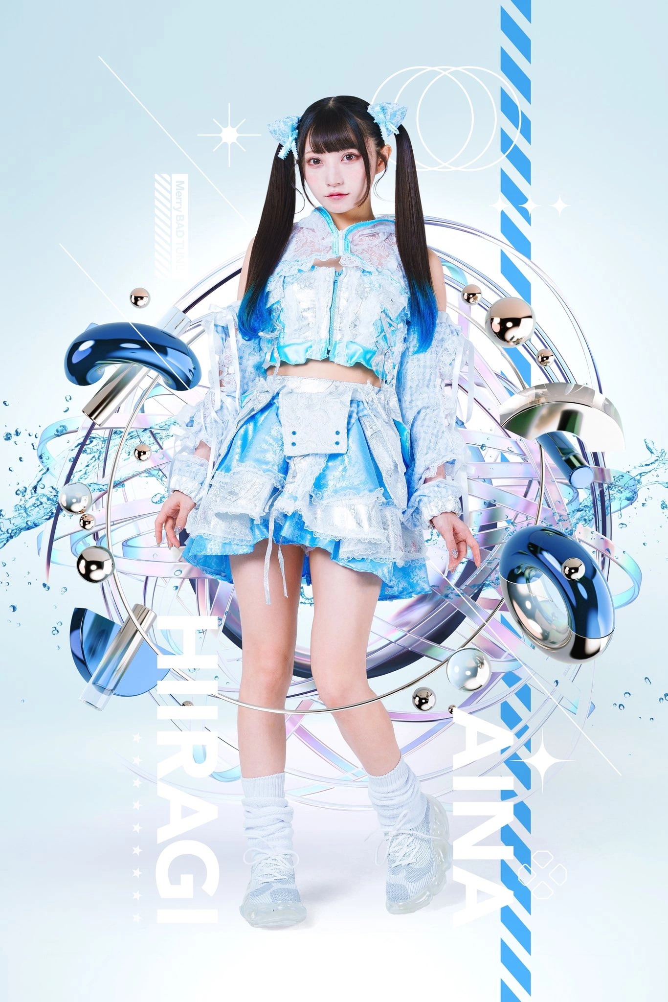 Hiiragi Aina (柊木あいな) is a Japanese idol, a member of Merry BAD TUNE. and former member of Worl's End., and LARY (as Shindou Aina (神藤愛奈)).