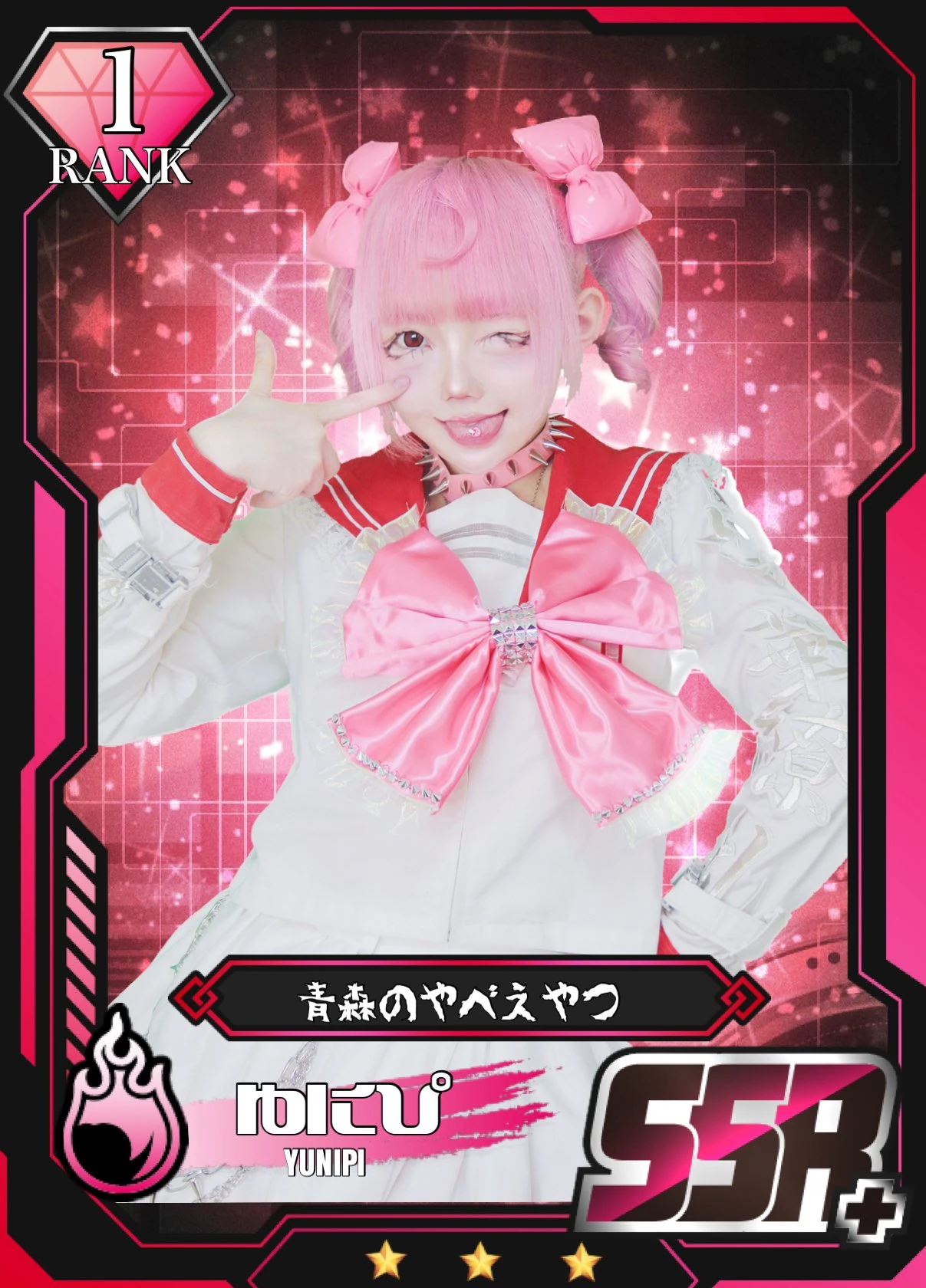 Yunipi (ゆにぴ) is a founding member and leader of HUSH HUSH, a member of Super Macaroni Salad, a former solo idol, a former founding member of BLUE FOREST, and a former member and leader of FAKE PLANCK STARS.